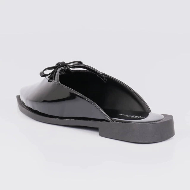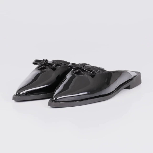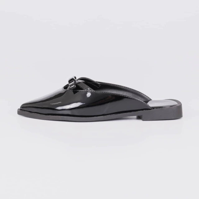 Ana - Mule Feminino Verniz Bico Fino Laço Preto