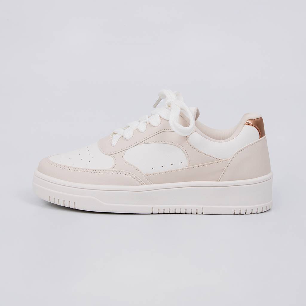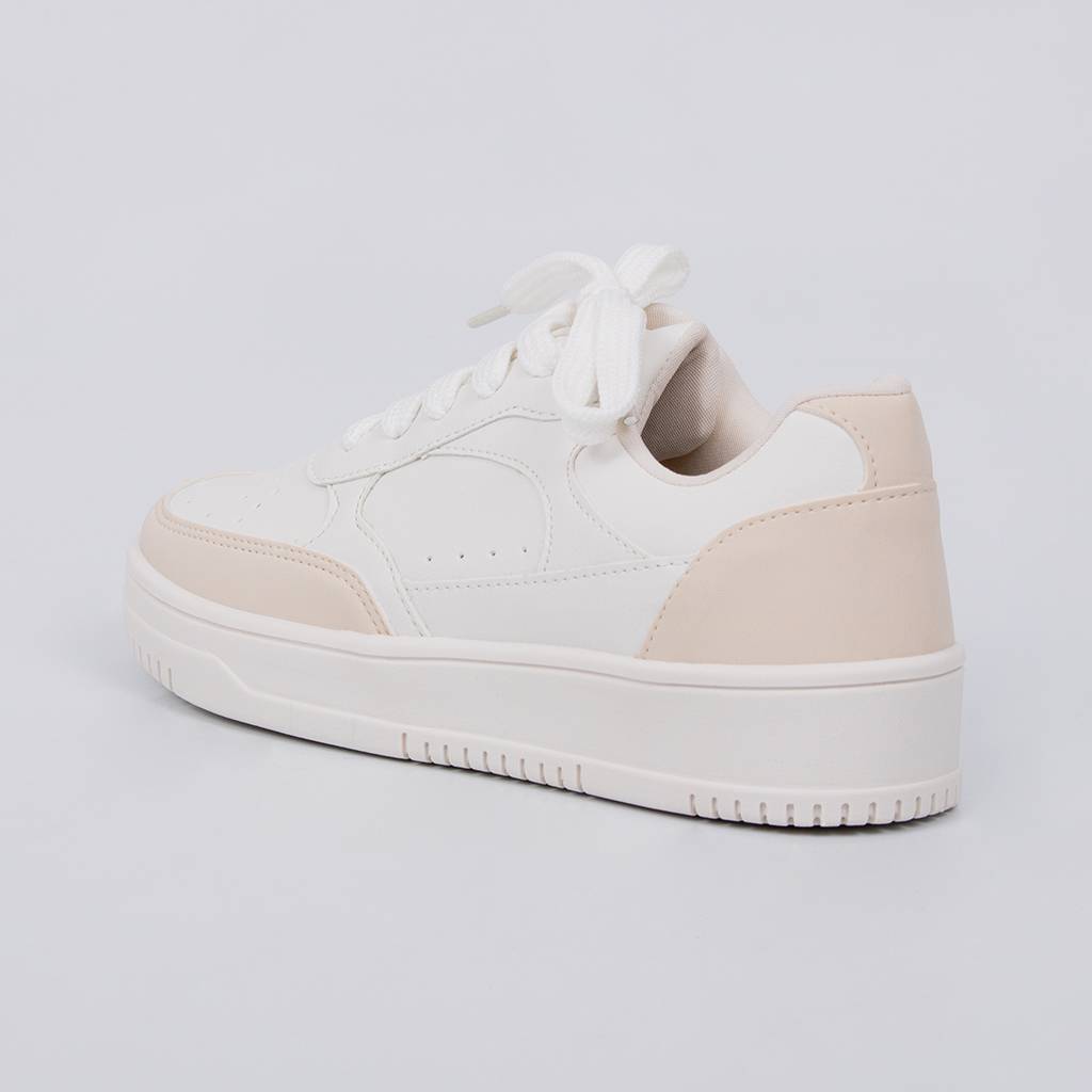 Aspen - Tênis Feminino Bico Redondo Branco/Bege
