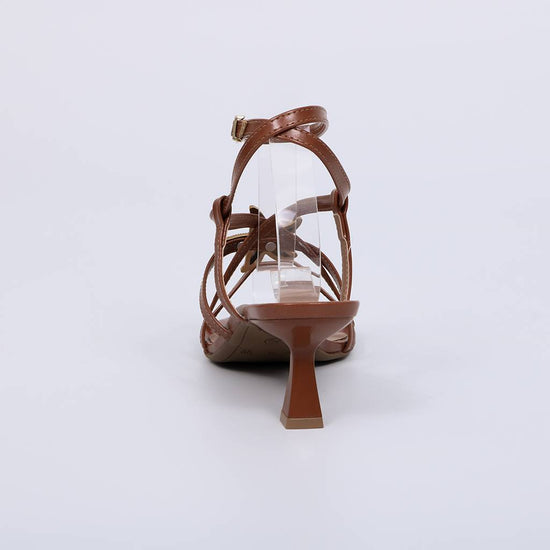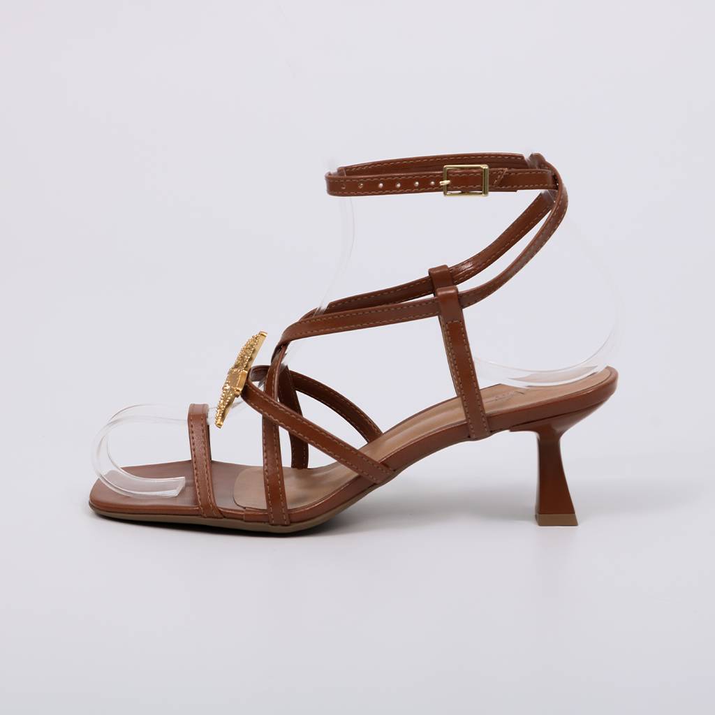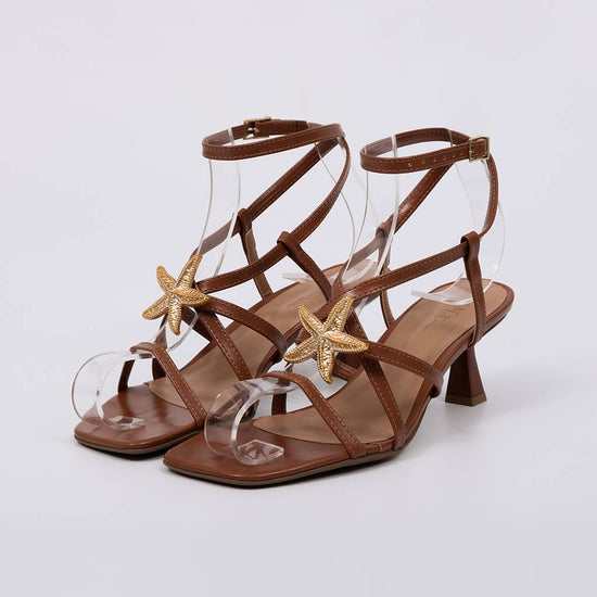 Caterine – Sandália Feminina Salto Médio Tiras Estrela Caramelo