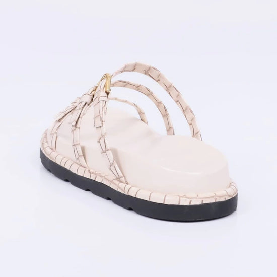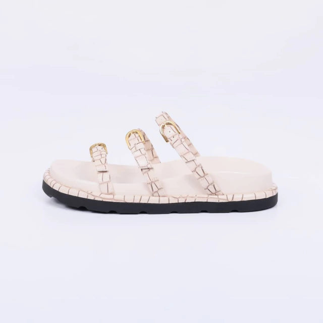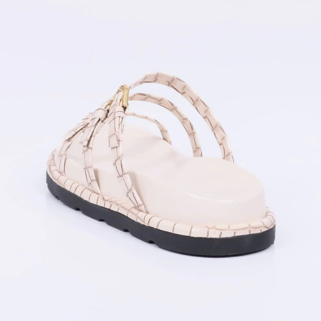 Duke - Papete Feminina Anatômica Bico Redondo Aplicação Off-White