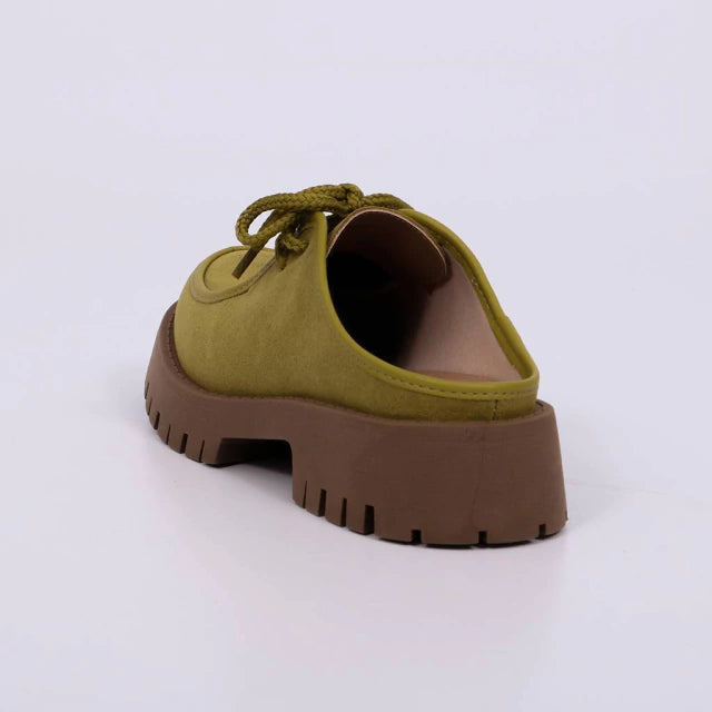 Emily - Mule Feminino Tratorado Camurça com Cadarço Verde Claro