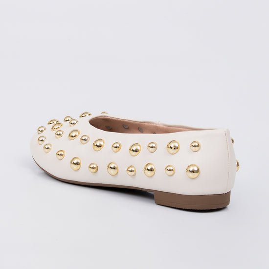Flow - Sapatilha Feminino com Tachas Douradas Off-white