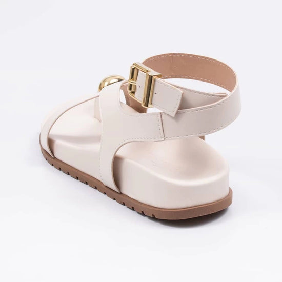 Glam - Sandália Papete Feminina Tiras Médias Aplicação Fivela Off-White