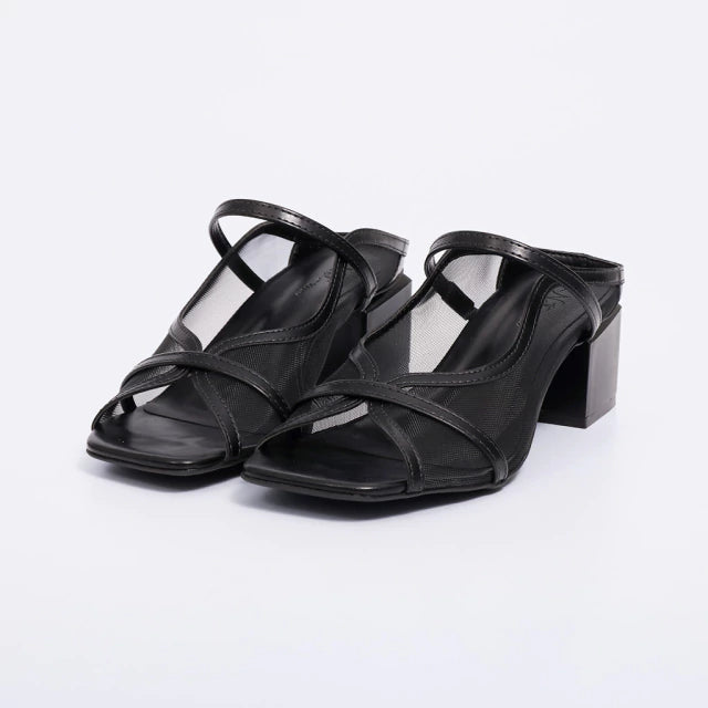 Helo – Tamanco Feminino Slingback Salto Sandalia Bloco Tiras Finas Preto