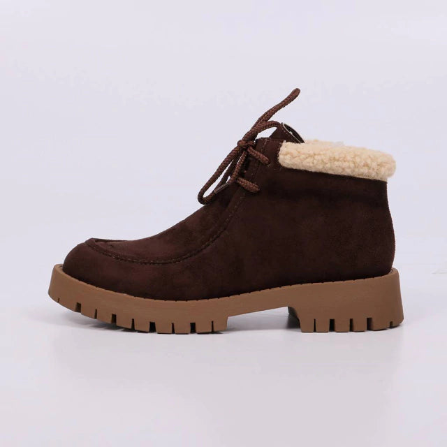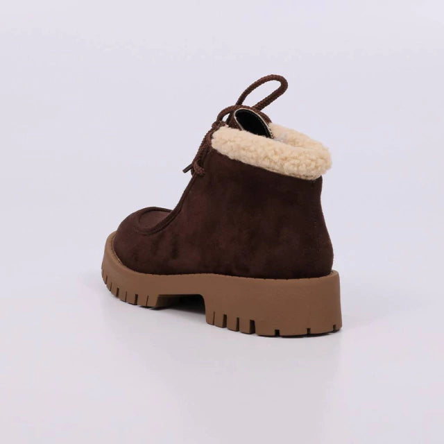 Joana – Bota Feminina Casual Cano Curto Tratorada Forrada Marrom Escuro
