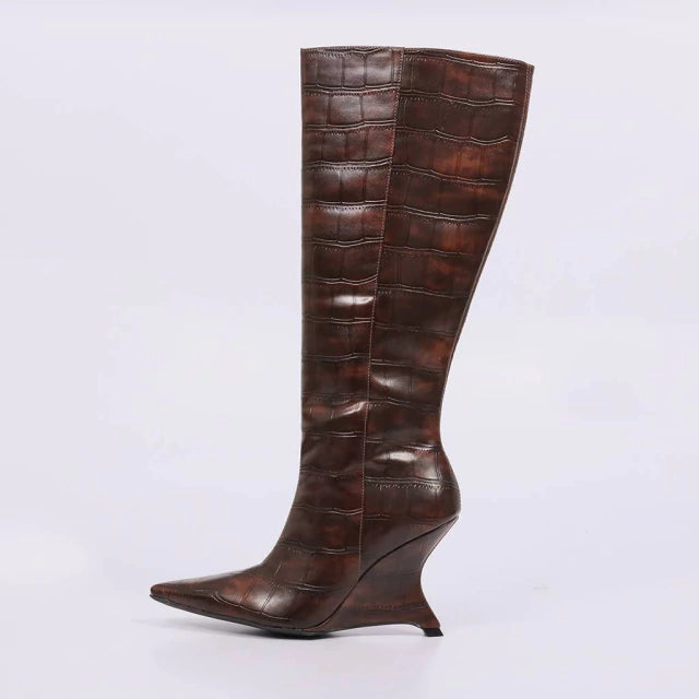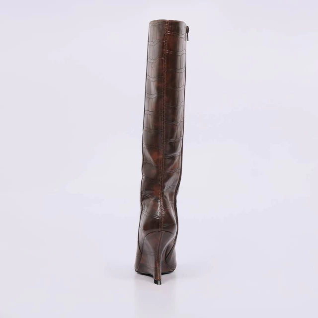 Kiara - Bota Feminina Over The Knee Salto Alto Croco Marrom Escuro