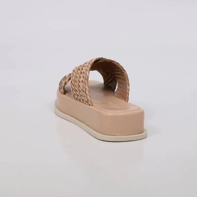 Lais - Flatform Feminina Tiras Trançadas Cruzadas Bege