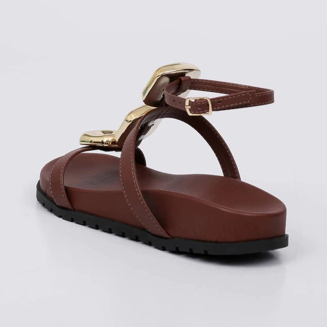 Leblon - Sandália Papete Feminina Anatômica Aplicação na Tira Marrom
