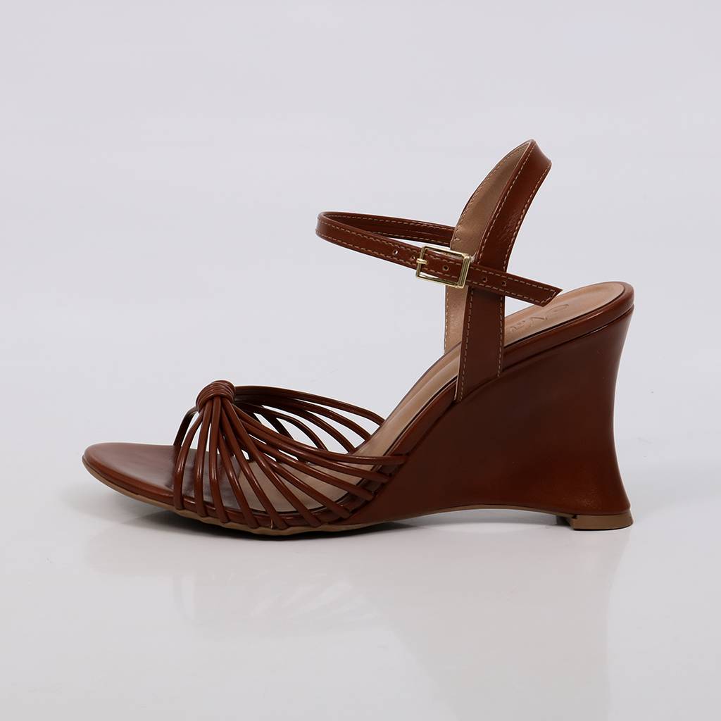 Marina – Sandália Feminina Salto Anabela Tiras Trançadas Marrom