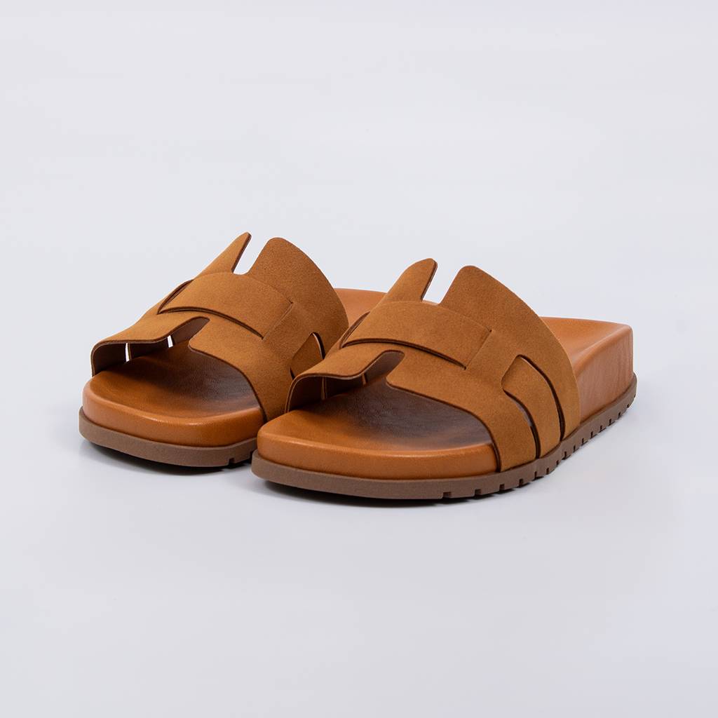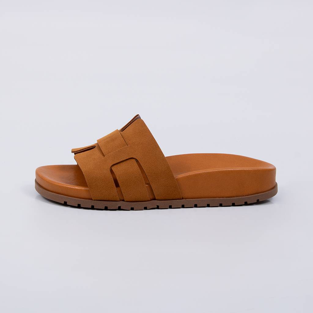 Núbia - Papete Feminina Anatômica Recorte Camurça Caramelo