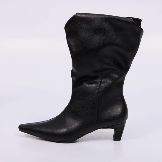 Sofia - Bota Feminina Slouchy Salto Baixo Bico Fino Preto
