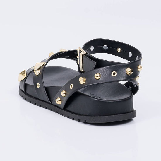 Valen - Papete Feminina Tiras Aplicação Fivela Dourada Preta