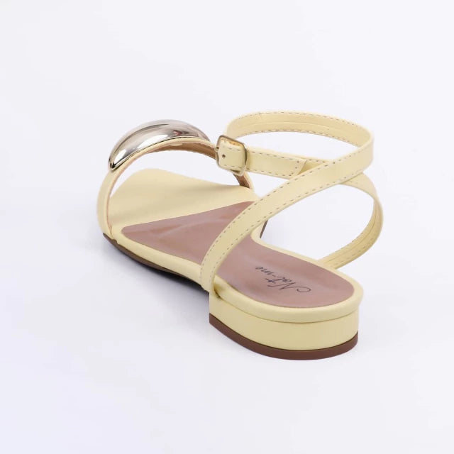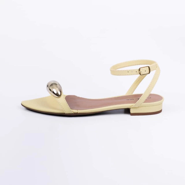 Valence - Sandália Rasteira Feminina Bico Folha Aplicação Amarela
