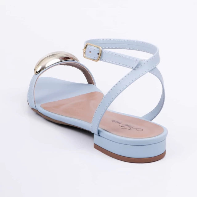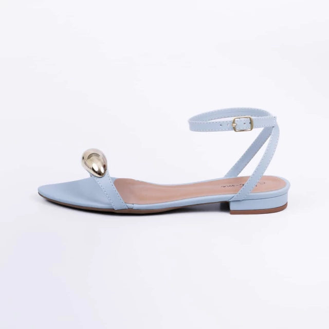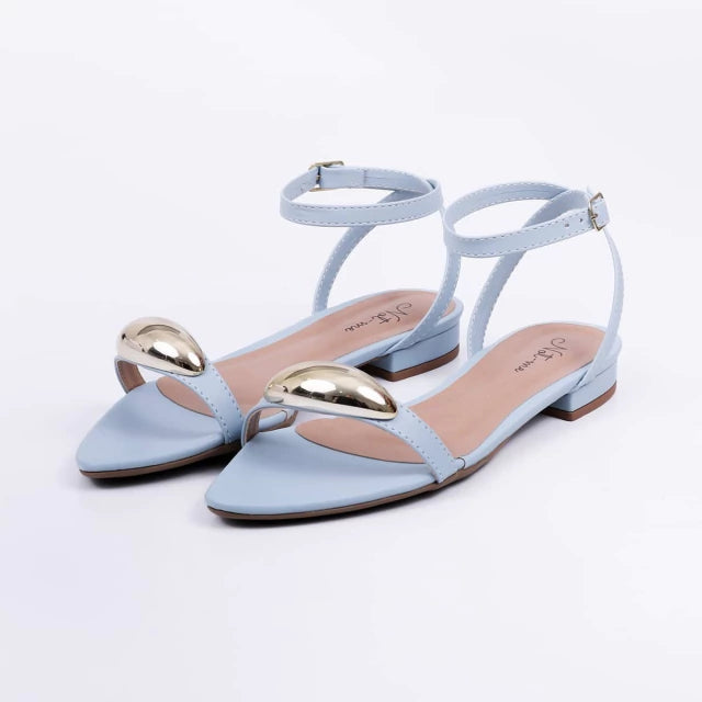 Valence - Sandália Rasteira Feminina Bico Folha Aplicação Azul