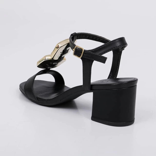 Vitória - Sandália Feminina Salto Bloco Aplicação Fivela Preto