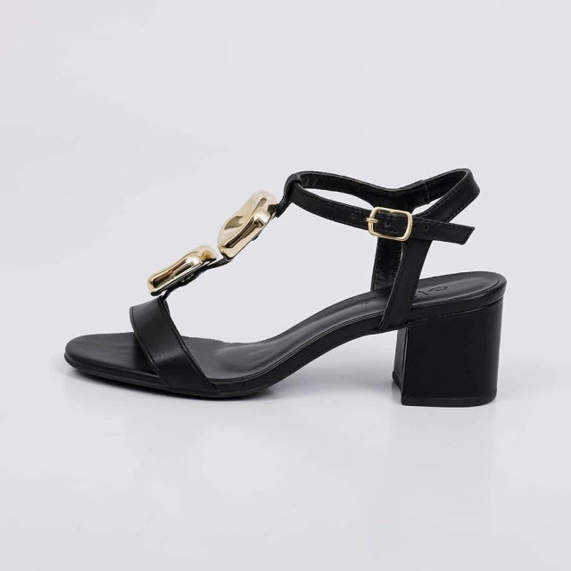 Sandália Feminina Salto Bloco com Aplicações Douradas